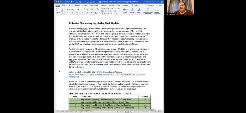 Each month, I worked to keep our membership informed on key legislative actions at the regional, state, and national levels. I provided regular updates at board and general meetings, tracked emerging issues, and shared how they could impact our students and families.