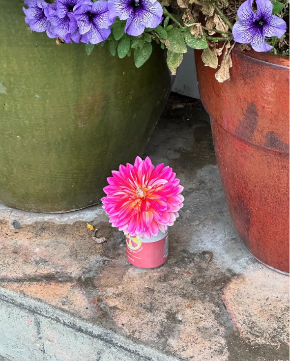 A while ago, I was walking through town and noticed something sweet—soda cans filled with flowers, tucked onto shop steps, windowsills, and benches. No names, no fanfare—just quiet little love notes to the community.